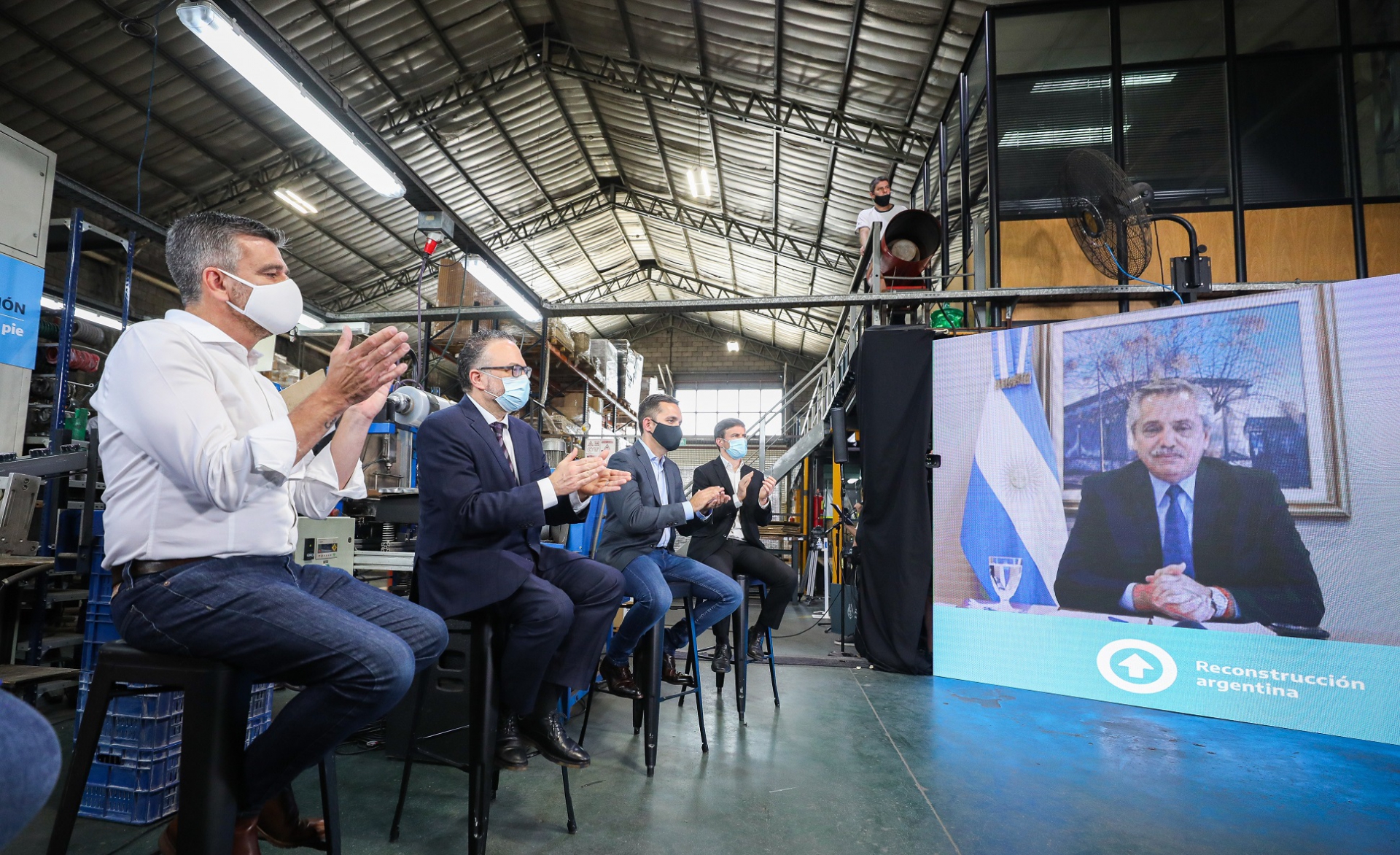 El presidente Alberto Fernández encabezó este mediodía el acto de lanzamiento del Plan de Reactivación e Inclusión Financiera para PyMEs, por 57.500 millones de pesos, que contará con cuatro líneas de financiamiento destinadas a la inversión productiva de proyectos de mediano y largo plazo para los sectores industrial, agroindustrial y de servicios.