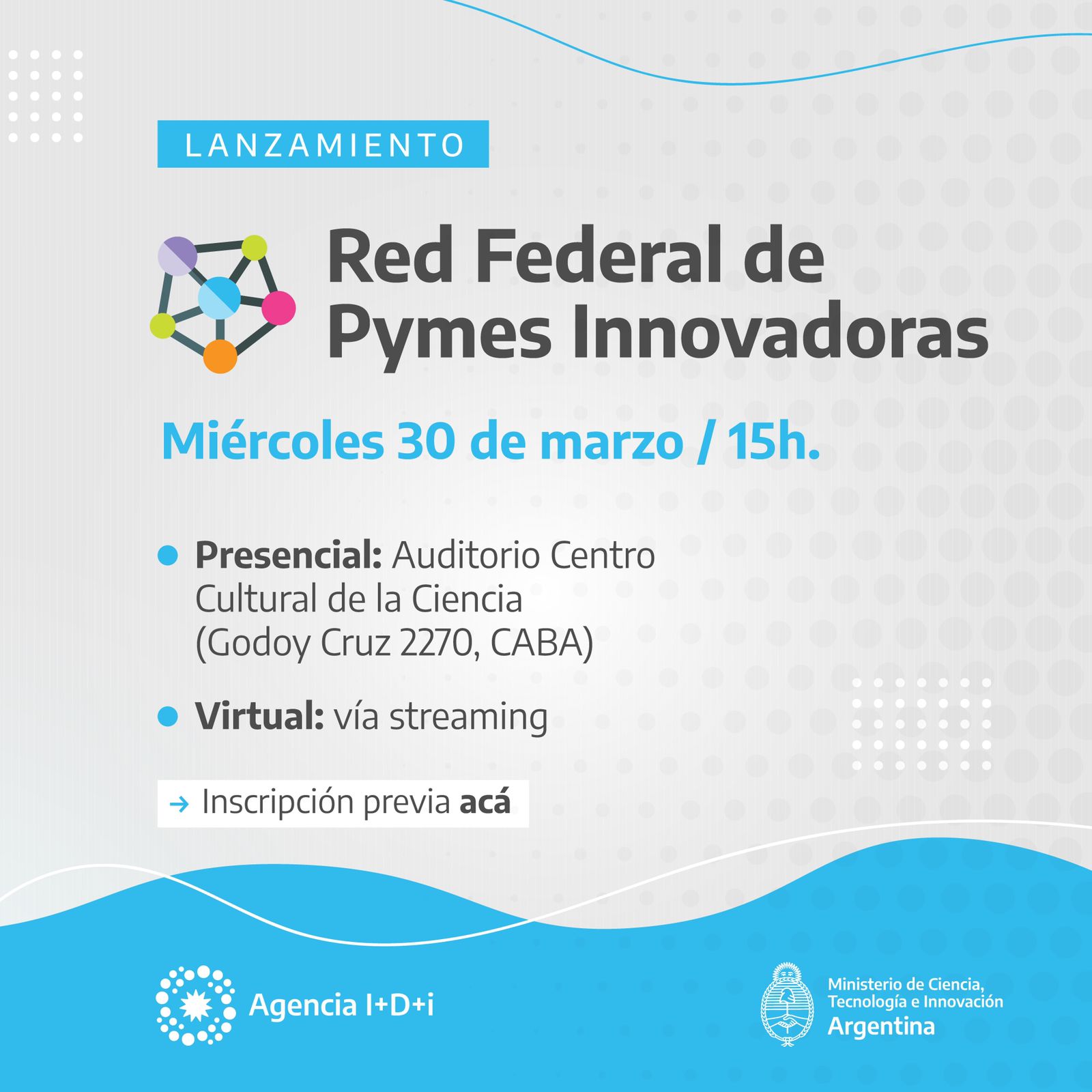 Con la posibilidad de optar por la modalidad presencial o de streaming, la Agencia I+D+i convoca al mundo de las empresas Pymes con perfil innovador, a formar parte del lanzamiento de esta nueva plataforma que seguramente, será una herramienta necesaria para la proyección y el sostenimiento de políticas públicas relacionadas con el sector.